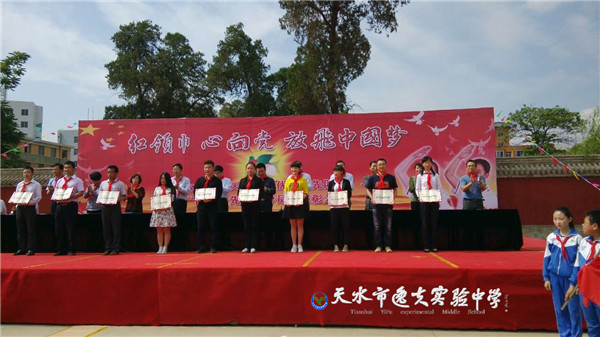 出席表彰大会的有天水市人大常委会副主任刘来生,市政协副主席马武生,团市委副书记张兴,市教育局副局长沈建玲,秦安县党政领导,以及各县(区)团委、教体局负责人,市直学校团委书记、少先队大队辅导员,全市受表彰的部分少先队员、辅导员和秦安县兴国四小全体师生。表彰大会上,胡雅凡同学代表全体少先队员发言,赢来与会代表的一致赞许和热烈掌声。
