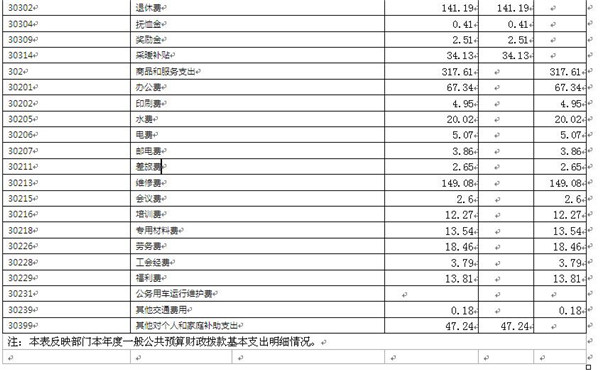 商品和服务支出317.61万元,主要包括办公费、水电费、维修费、福利费等。