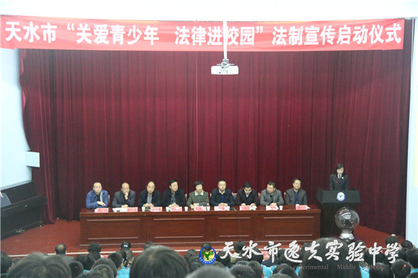 11月15日,天水市“关爱青少年·法律进校园”法制宣传活动启仪式在逸夫实验中学成功举行。