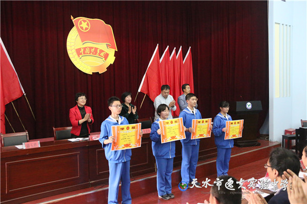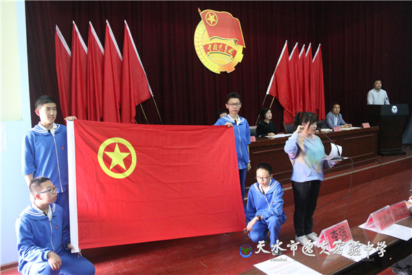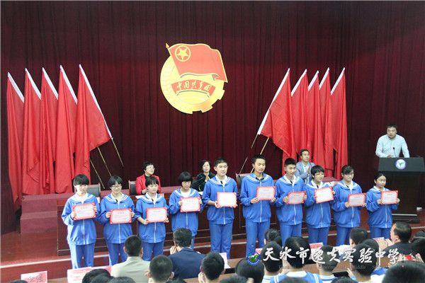 市教育局副局长、市逸夫实验中学校长沈建玲,副校长计卫珍以及学校各处室主任、副主任,校团委全体成员,八、九年级团支部书记及团员,七年级新入团团员共计300多人参加了大会。本次大会由副校长花明同志主持。