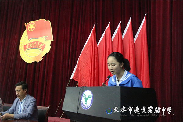 大会在高亢嘹亮的国歌声中拉开帷幕。首先,校团委组织委员蒋丹丹同志宣读新入团员名单。校团委组织委员张馨带领新团员在团旗下庄严宣誓,全体团员重温入团誓词,校团委宣传委员张莉同志宣读了表彰优秀团支部、优秀团员、优秀团干的决定。九年级五班杨梦昕同学代表优秀团员作了发言。校团委书记杨小刚同志在讲话中对新团员提出了希望和要求:要求新团员,树立正确的世界观、人生观、价值观,塑造爱党爱国、关心集体、尊敬师长、勤奋好学、团结互助、遵纪守法的优良品格。