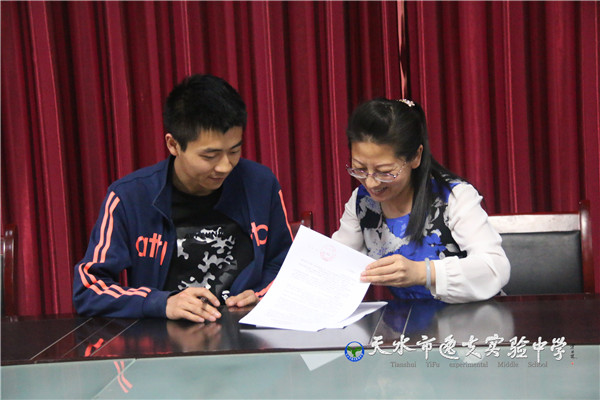 签约仪式上,学校副校长花明讲话说:“进行班主任‘师带徒、结对子’,就是要发挥优秀骨干班主任的作用,使年轻班主任迅速适应并卓有成效地开展班级管理工作,不断提高教育管理水平,从而培养造就在全市有影响力、学有专长、管有特色的名班主任,实现我校班主任队伍素质的动态整体提高。”年轻班主任张莉老师说:“很高兴学校给我提供了这么好的发展平台,我一定会认真学习,认真完成‘师傅’安排的每一项任务,不断提高业务能力,促进自己更快更好地发展。”(供稿:石瑞)