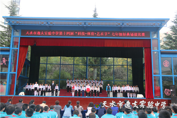 沐浴着冬日的暖阳,近期我校成功举办了第十四届 “科技 · 体育 ·艺术节”七年级经典诵读比赛。全级十三个班选送了十九个诵读节目参加角逐,同学们用《少年中国说》、《满江红》、《弟子规》、《蒹葭》等经典诗文弘扬祖国优秀的传统文化,接受中华传统美德潜移默化的影响与熏陶;提高了学生阅读经典古诗文的兴趣,增强了广大师生的文学和道德修养。