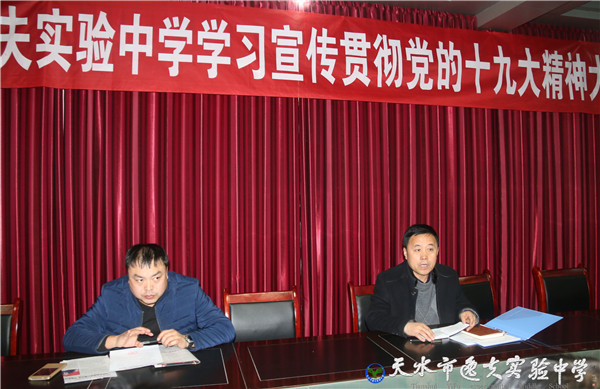 活动由校党支部书记周和平同志主持,与会人员首先学习了《天水市教育局党委关于深入学习贯彻党的十九大精神的实施方案》,《中国共产党章程》(2017年版)等内容,周和平同志安排了近期学校党建重点工作。 活动中,周和平同志还向全体党员分享了他近期赴扬州大学参加全省党支部书记国培项目的心得体会。