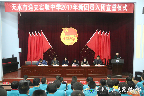 12月15日下午,我校2017年学生入团宣誓仪式在校阶梯教室隆重召开。市教育局副局长、逸夫实验中学校长沈建玲,校党支部书记周和平,副校长周旭忠、计卫珍、花明和学校中层领导及两百多位学生团员参加了大会。