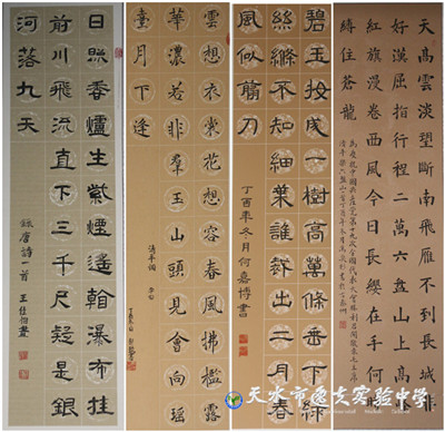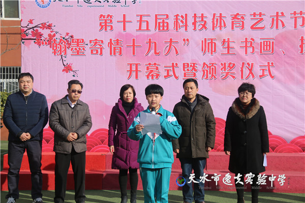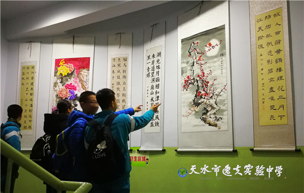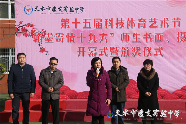 在开展仪式上天水市教育局副局长、市逸夫实验中学校长沈建玲对同学们的书画和摄影作品给予了极高的评价。她说:“举办这样的展览,目的就是要通过活动给有书法、绘画、摄影爱好和特长的同学们一个展示才华的舞台,同学们的作品质量很高。希望同学们在日常学习生活中自觉地认识美、欣赏美、表现美,并以精美的作品为载体更好地体现出逸夫学子的人文素养、家国情怀和高雅气质。”