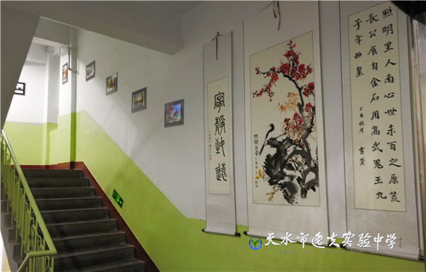 本次展览以学校教学楼过道为展厅,让师生们的书画、摄影作品走出展室,走近学生,让大家在每天行走的楼梯间随时随处都能欣赏到精美的同学们的作品,从而达到环境育人的目的。这种形式深受师生们的欢迎,大家感到每天都徜徉在美的氛围之中,心情非常舒畅。作品被悬挂在过道中的同学激动地说,“看到自己的作品挂在过道上,被同学们羡慕的评价着,感到非常自豪。”自己能够为美化我们的校园做一点贡献,非常高兴!
