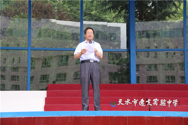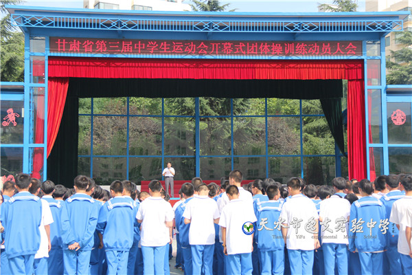 甘肃省第三届中学生运动会将于8月6日至16日在天水举行。届时,全省14个地州市的上千名中学生运动健儿、嘉宾将齐聚羲皇故里,共同参与一场属于青春和活力的盛会。为了办好这场盛会,为了向全省的来宾和朋友们推介天水、分享天水中学生昂扬向上的精神风貌,天水市委、市政府和市教育局正在精心筹备这一盛会,并决定举办一场高水平的、充分展示天水中学生活力和风采的开幕式。开幕式共分三个篇章:“阳光下快乐”、“阳光下运动”、 “阳光下成长”。省中运会筹备委员会和市教育局一致决定,由我校七年级同学来承担开幕式第二篇章的训练和表演。基于此,学校专门制定了开幕式排练的安全应急预案和实施方案,成立了领导小组,下设训练指挥部。指挥部下辖考勤组织组、训练组、安全医疗组、后勤保障组、宣传组、广播音响组六个小组,全面负责训练的各项事宜。根据领导小组的安排,除了向教育行政主管部门上报安全应急预案和实施方案,向家长发放《告家长书》外,还要精心组织动员大会,严明纪律,鼓舞人心,认真圆满完成开幕式的演出这一任务。